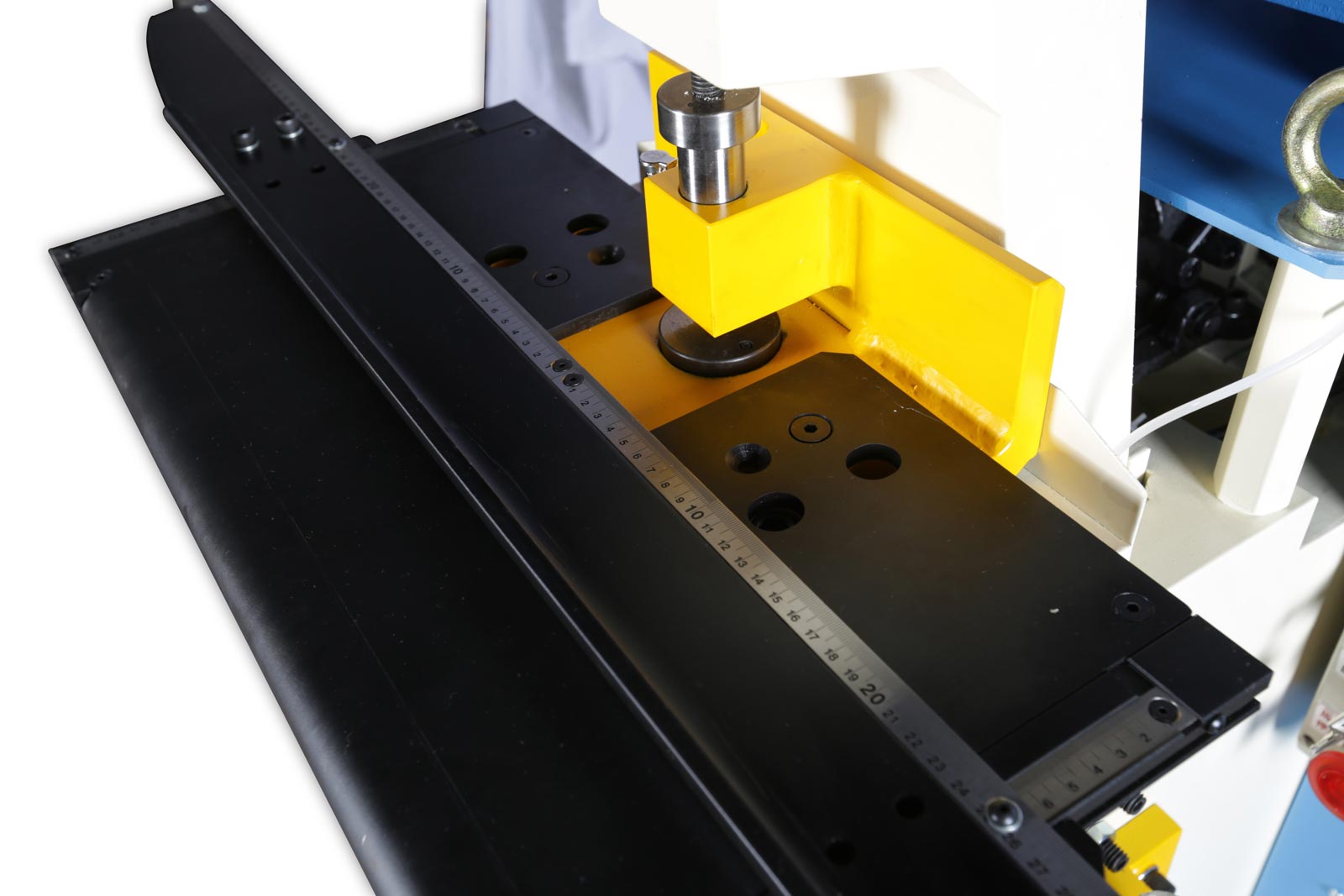 - 沖孔及剪角模具可選配定位尺做為輔助工具,用以提升效率,降低不良率