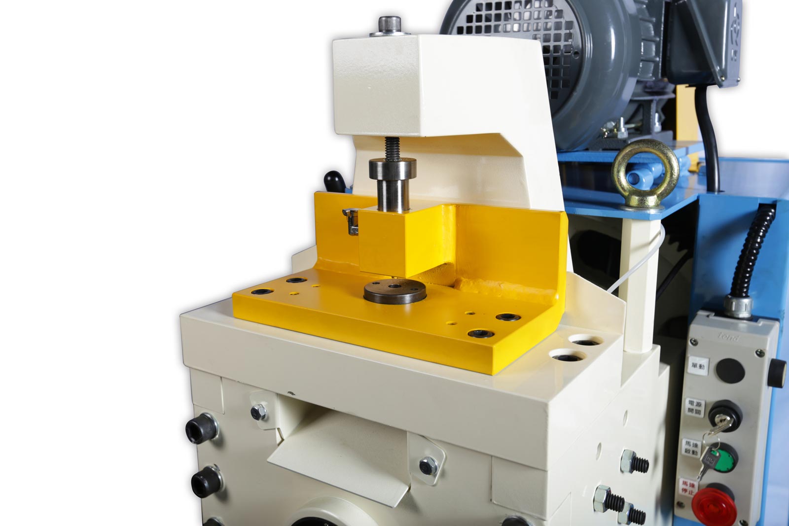 - 鋼鐵切斷沖孔機即為金屬加工業之萬能鐵工機亦為金屬複合加工機